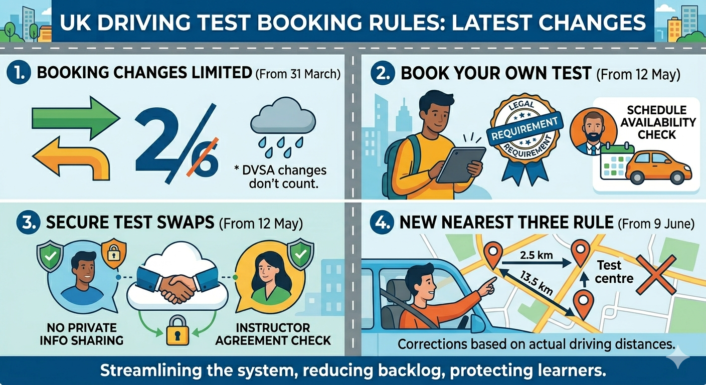 From 31 March (yes, tomorrow), the number of times you can change your driving test booking is being cut from six times down to two.